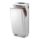 • Eigenschaften 2 Hochleistungs-Luftdüsen-Leisten, Auffangbehälter für Kondenswasser unten am Gerät, Inhalt: 0,6 Liter, Hygienisch und wirtschaftlich, Luftfilter, Rote LED-Beleuchtung im Luftschacht, Stop-Automatik beim Entfernen der Hände