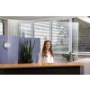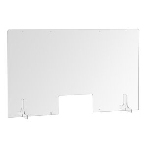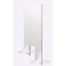 • Ausführung Mit Durchreiche, Transparent, Abgerundete Ecken, Mit 2 Standfüßen (Plexiglas), in 2 Positionen steckbar, Vorbereitet für Deckenmontage (Bohrungen)