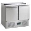 230V / 155W steckerfertig mit 2 Türabteile. Auslage für 2 x 1/1 und 2 x 1/4 GN Behälter 150mm tief. Umluftkühlung +2 bis +10 °C | Maße: BTH 900 x 700 x 865 mm. Mit Schneidbrett und CNS Klappdeckel, Bruttoinhalt 260 ltr.