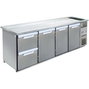 Die Kühltheken der Hagola Business Class unterscheiden sich gegenüber den Kühltheken der Economy Class hauptsächlich in der Steuerung, Korpußausführung und den Griffleisten bzw. Verschlüssen. Die Schanktheken der Hagola Business Class sind mit einer elektronischen Komfortsteuerung ausgestattet. Der Kühlkorpus ist mit tiefgezogener Bodenwanne als Auffangwanne ausgestattet. Ein weiterer VORTEIL der Hagola Business Class ist die Produktlinie mit einer Außenhöhe von nur 79cm anstatt 89 cm( Angebote auf Anfrage ). Sie sind überall dort einsetzbar, wo eine Gesamtarbeitshöhe von 85cm nicht überschritten werden kann.( z.B. unter Fensterbrüstungen )